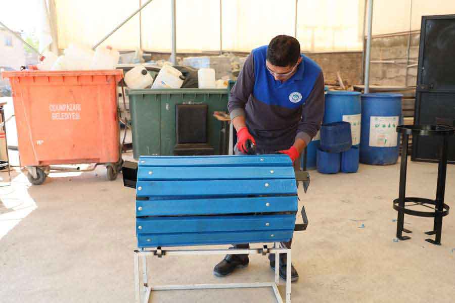 Hikâye aslında çok basit ama bir o kadar da anlamlı: Vatandaş evinde artık kullanmadığı plastik leğen, gıda kapları, bidonlar, kovalar ya da kapakları çöpe atmak yerine mahalle muhtarlığına ve Odunpazarı Belediyesi Halk Merkezlerine getiriyor. Muhtarlık bu plastikleri belediyeye teslim ediyor. Belediye atıkları işliyor, kalıplardan geçiriyor, ortaya oturma bankları ve çöp kovaları çıkıyor. Sonra bu ürünler yeniden mahalleye dönüyor. Yani çöp gibi görülen malzeme, hizmet olarak vatandaşa geri geliyor. Mavi kapaklardan dönüştürülen bu çöp kovaları da Odunpazarı’nda ilk olarak Asarcıklı Caddesi’ne yerleştirilerek vatandaşın hizmetine sunuldu.