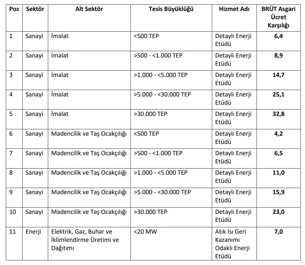 Söz konusu cetvel, enerji etüdü hizmetlerine ilişkin bedellerin belirlenmesinde zorunlu, asgari veya azami bir fiyat düzenlemesi teşkil etmemekte olup; uygulamada tarafların sözleşme serbestisi, piyasa koşulları, hizmetin kapsamı, süresi ve teknik özellikleri esas alınarak bedel belirlenmesine herhangi bir kısıtlama getirmemektedir.