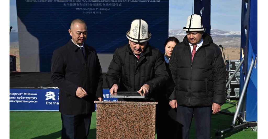 Kırgızistan Bakanlar Kurulu Başkanı – Cumhurbaşkanlığı İdaresi Başkanı Adılbek Kasımaliev, Çüy bölgesine yaptığı çalışma ziyareti kapsamında Kemin ilçesinde yeni bir güneş enerjisi santralinin inşaat sahasında törenle kapsül yerleştirme törenine katıldı.