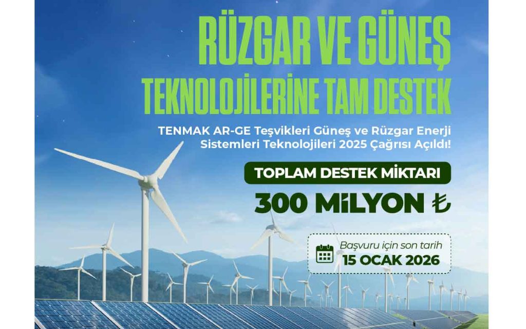 Türkiye Enerji, Nükleer ve Maden Araştırma Kurumu (TENMAK), güneş ve rüzgârda teknolojik projeleri destekleyen iki çağrıya çıktı. Her biri 150 milyon lira bütçeli çağrılar, “tendes.tenmak.gov.tr” adresinden başvuruya açıldı. Başvurular, 15 Ocak 2026 gün bitimine kadar devam edecek.