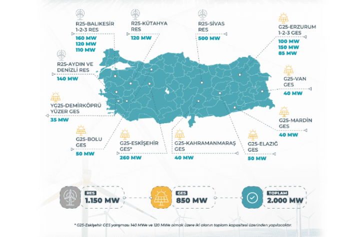Güneş ve rüzgâr enerjisine dayalı yenilenebilir enerji kaynak alanları (YEKA) ve bağlantı kapasitelerinin tahsisine ilişkin yarışma ilanları, Resmî Gazete’de yayınlandı....