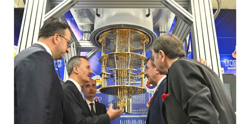 Türkiye’nin Kuantum Çağı Başlıyor: Türkiye’nin İlk Kuantum Bilgisayarı Tanıtım Töreni, Cumhurbaşkanı Yardımcısı Cevdet Yılmaz, TOBB Başkanı ve TOBB ETÜ Mütevelli Heyeti Başkanı M. Rifat Hisarcıklıoğlu, Cumhurbaşkanlığı Savunma Sanayii Başkanı Prof. Dr. Haluk Görgün ve TOBB ETÜ Rektörü Prof. Dr. Yusuf Sarınay’ın katılımıyla TOBB ETÜ Teknoloji Merkezi’nde yapıldı.