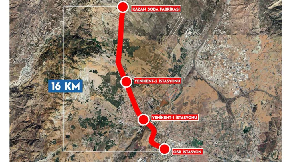 “Başkentray Hattı kapsamında Kayaş-Sincan arasında toplam 24 istasyon bulunuyor. Sincan’dan Yenikent’e uzanacak 12 kilometrelik güzergahta OSB, Yenikent-1 ve Yenikent-2 adında üç yeni istasyon kuruyoruz. Projemiz tamamlandığında Başkentray Banliyö Hattını Sincan İstasyonu üzerinden 1. Organize Sanayi Bölgesi ve Yenikent’e entegre edeceğiz. Yenikent’in 600 bini aşan nüfusunu toplu taşımayla başkentin raylı sistem ağına bağlayacağız. Aynı zamanda Kazan Soda tesislerine bağlayacağımız iltisak hattı sayesinde de yılda 4.4 milyon ton yük taşıyacağız. Kazan Soda Fabrikası’nda üretilen soda külünü ekonomik ve hızlı bir şekilde limanlara ulaştırıp dünya piyasasına sunarak ülkemize ciddi bir ekonomik katkı sunacağız.”