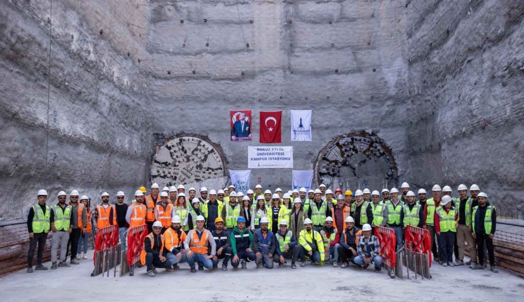 İzmir Büyükşehir Belediyesi’nin, kendi kaynaklarıyla yapımını sürdürdüğü Buca Metrosu’nda önemli bir eşik daha aşıldı. Buca Koop İstasyonu’ndan kazıya başlayan iki tünel açma makinesi (TBM), aynı anda Dokuz Eylül Üniversitesi Tınaztepe İstasyonu’nda ışığı gördü. İzmir Büyükşehir Belediye Başkanı Dr. Cemil Tugay, “Buca Metrosu’nun bir an önce İzmirlilerle buluşması için sabırsızlanıyoruz. Gelecek yılın sonuna kadar tünel açma işleminin bitirilmesini hedefliyoruz. Sonra en hızlı şekilde hatlar döşenecek ve istasyonlar yapılacak” dedi.