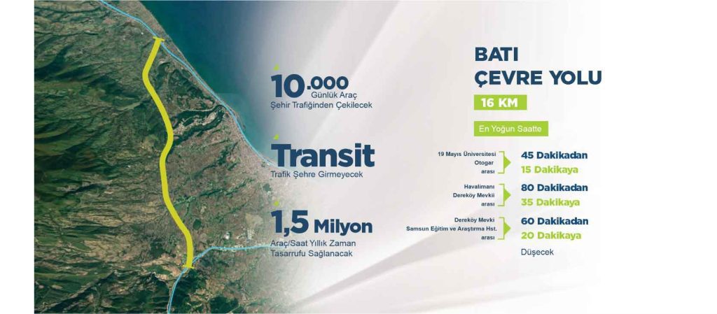 Samsun’da Batı Çevre Yolu’nda çalışmalar başladı. Gelişmeyi Samsun Büyükşehir Belediye Başkanı Halit Doğan duyurdu. Başkan Doğan, Batı Çevre Yolu’nun Samsun’un ulaşım yükünü hafifletmek açısından oldukça önemli olduğunu da vurguladı.