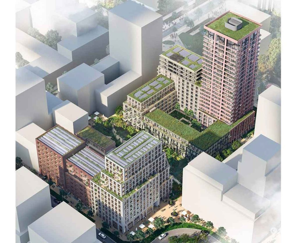 561 daire, sosyal konut, orta kiralı daireler ve özel sektördeki kiralık daireler olmak üzere farklı segmentlere ayrılıyor. Dairelerin büyüklükleri 30 ila 120 metrekare arasında değişiyor. Çatı bahçeleri yeşil görünüme ve yaşam kalitesine katkı sağlarken, 77, 45 ve 30 metre yüksekliğindeki binalar ortak bir avlu bahçesinin etrafında toplanıyor. Sitenin zemin katında restoran, perakende veya hizmet alanları için ticari alanlar ve konut sakinleri için rekreasyon alanları yer alıyor.