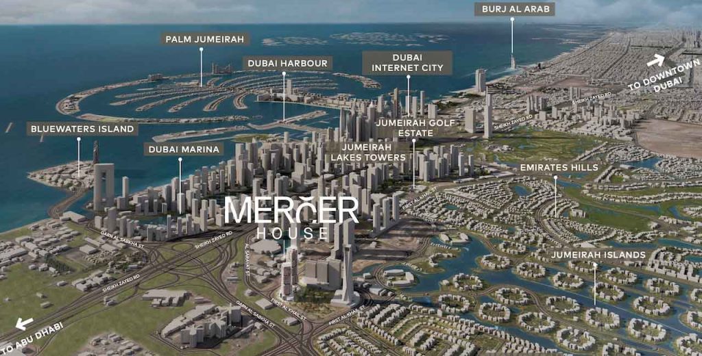 Ellington Properties tarafından tasarlanan Mercer House, prestijli Jumeirah Lakes Towers’da (JLT) yer alan şık bir konut projesi. İki göz alıcı kule, özenle tasarlanmış çeşitli daireler sunmakta. Mercer House, Uptown Dubai’nin en gözde bölgelerinden birinde konforlu ve modern bir ev arayanlar için ideal. Önemli iş merkezlerine, restoranlara ve eğlence seçeneklerine yakınlığıyla Mercer House, iş ve eğlence arasında mükemmel bir denge sunar.