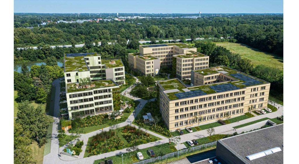 Planlanan üç ofis binası da çevreyi ve kaynakları farklı şekillerde koruyor, ancak hepsi yüksek DGNB Altın Standardına uyuyor. Mona – Monolithic, yaklaşık 8.000 m² ofis kiralama alanına sahip tuğla bir binadır. 50 cm kalınlığındaki tuğla cephesi sayesinde ek bir izolasyona gerek kalmıyor, bu da binanın inşası ve sonrasındaki işletmesi sırasında kaynak tasarrufu sağlıyor. Cleo binası – yeşil bina, 7.600 m². Toplam kiralanabilir alan, yeşil cepheli, CO2 azaltılmış bir yapıya sahip olacak. Her iki binada da geniş yeşilliklere sahip çatı terasları ve açık havada çalışmak için gerekli altyapı bulunmakta. Üçüncü ofis binası Woody, yani ahşap olan, ahşap hibrit bir bina olarak tasarlandı. İnşaata daha sonra başlanacak.